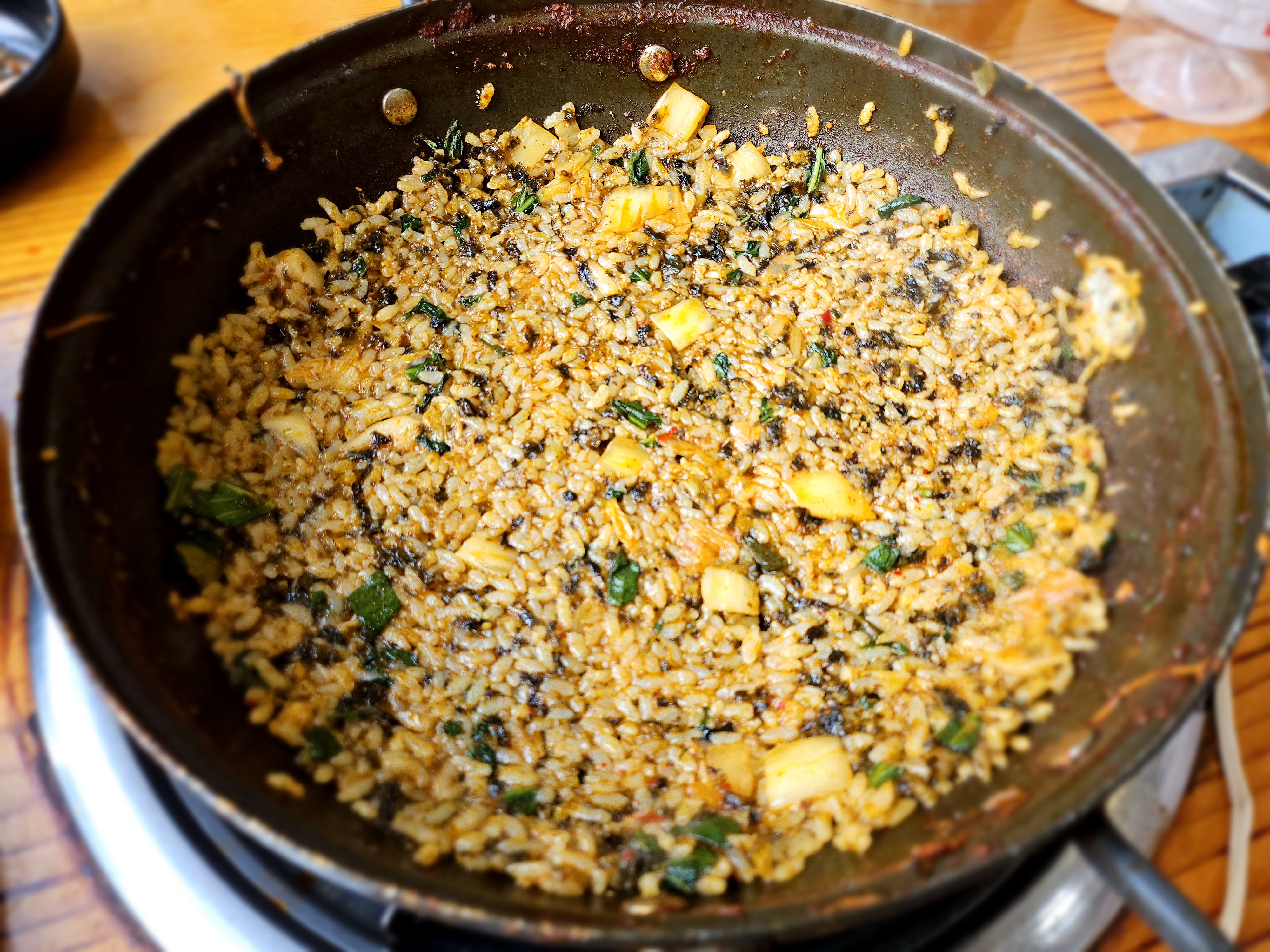 김가루 + 김치 + 양념 더해서 팬에 볶아주면 진짜 별미처럼 너무 맛있었습니다. 볶음밥을 먹기 위해서 감자탕을 먹어야 할 정도로 마무리 코스로 꼭 먹어야 하는 음식입니다.